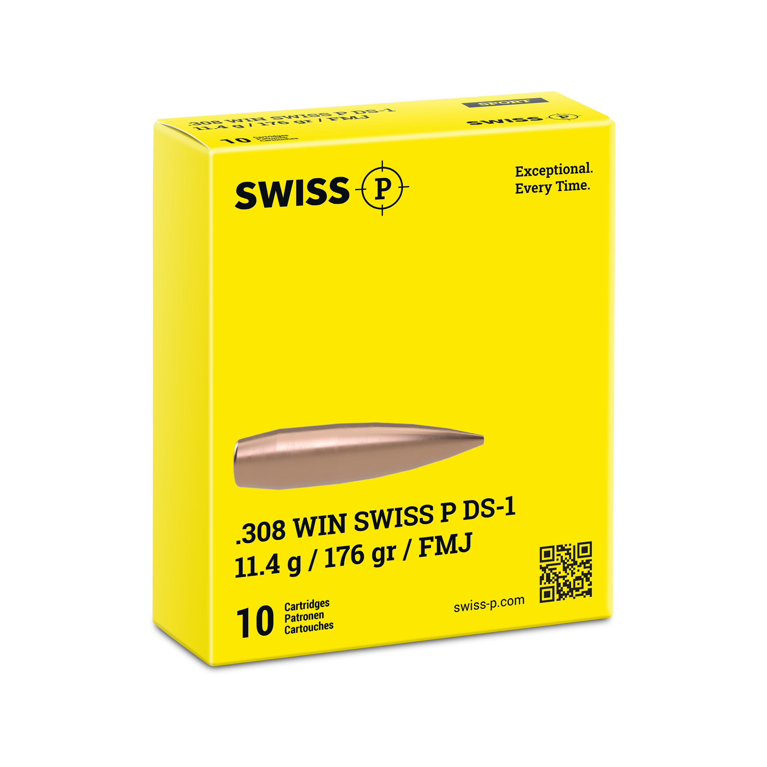 Ausgestattet mit einem robusten Vollmantel-geschoss, ist DS-1 die ideale Wahl für dynamische Schiesswettbewerbe. Produziert in der Schweiz, sorgt die unvergleichbare Qualität für absolute Zuverlässigkeit.